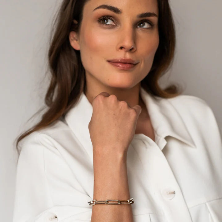 Bracciale maglia a catena in argento placcato oro con moschettone impreziosito da zircone