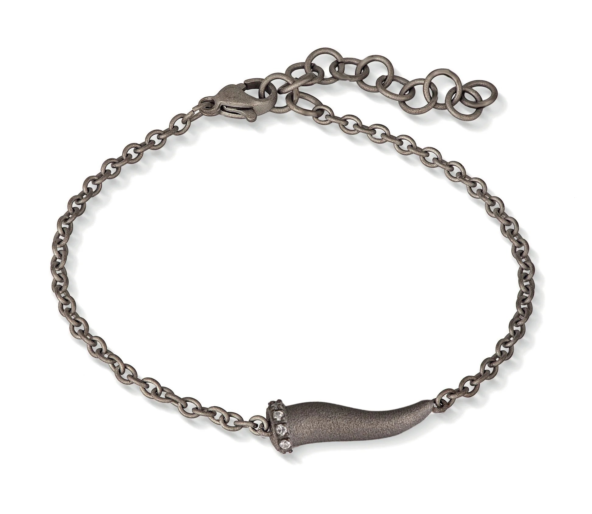 MANO J - BRACCIALE TITANIO CON CORNO TITANIO E DIAMANTI BIANCHI