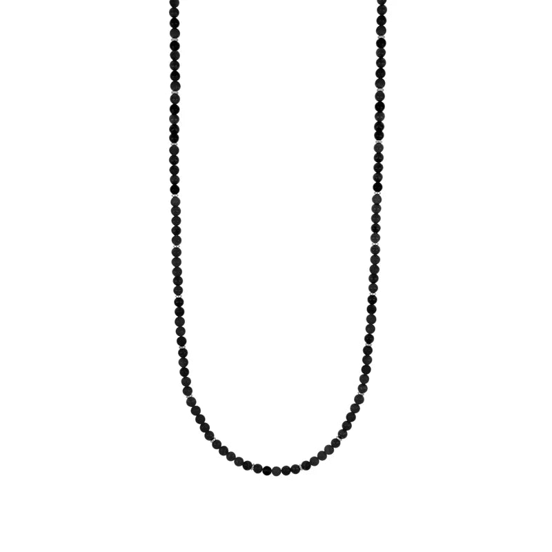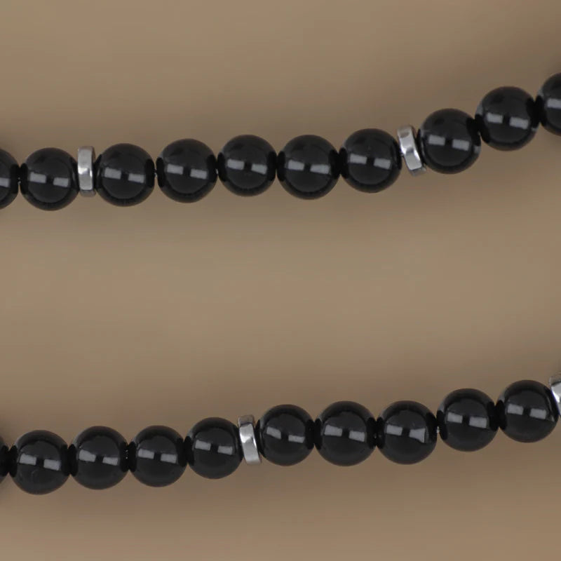 GOYATE' - COLLANA UOMO IN ACCIAIO E PIETRE SFERICHE LISCE NERE