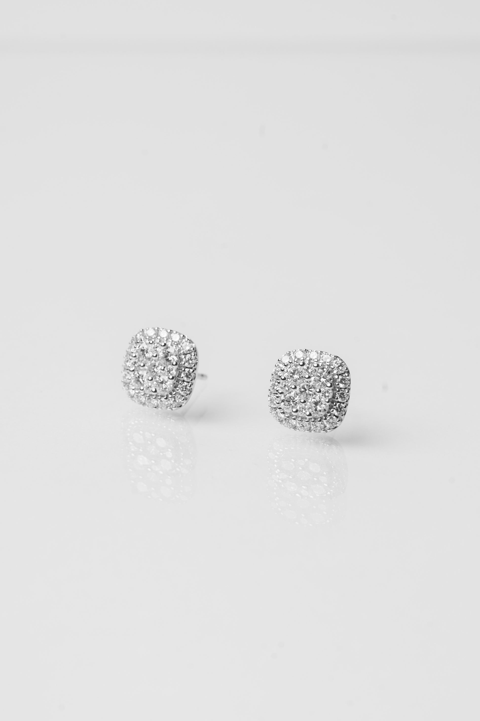 Orecchini quadrati oro bianco e pavè di diamanti bianchi taglio brillante