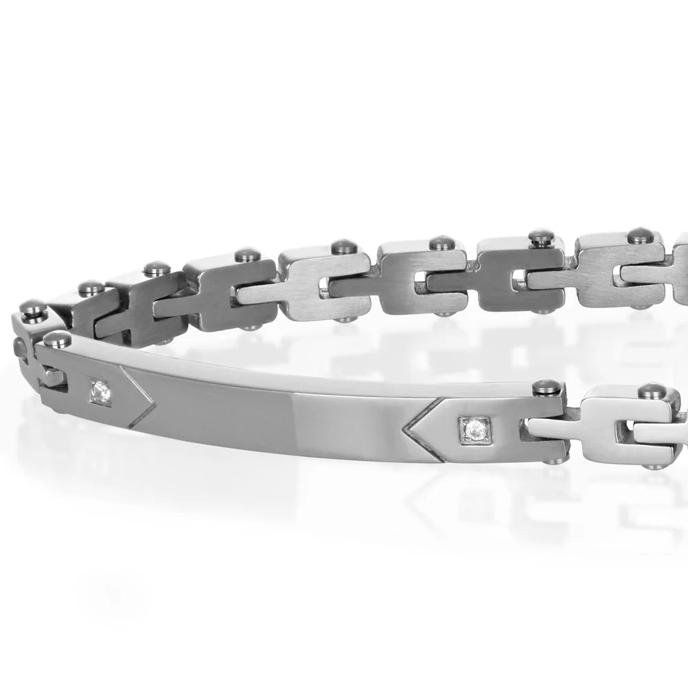 Bracciale in acciaio anallergico con placchetta centrale e zirconi laterali