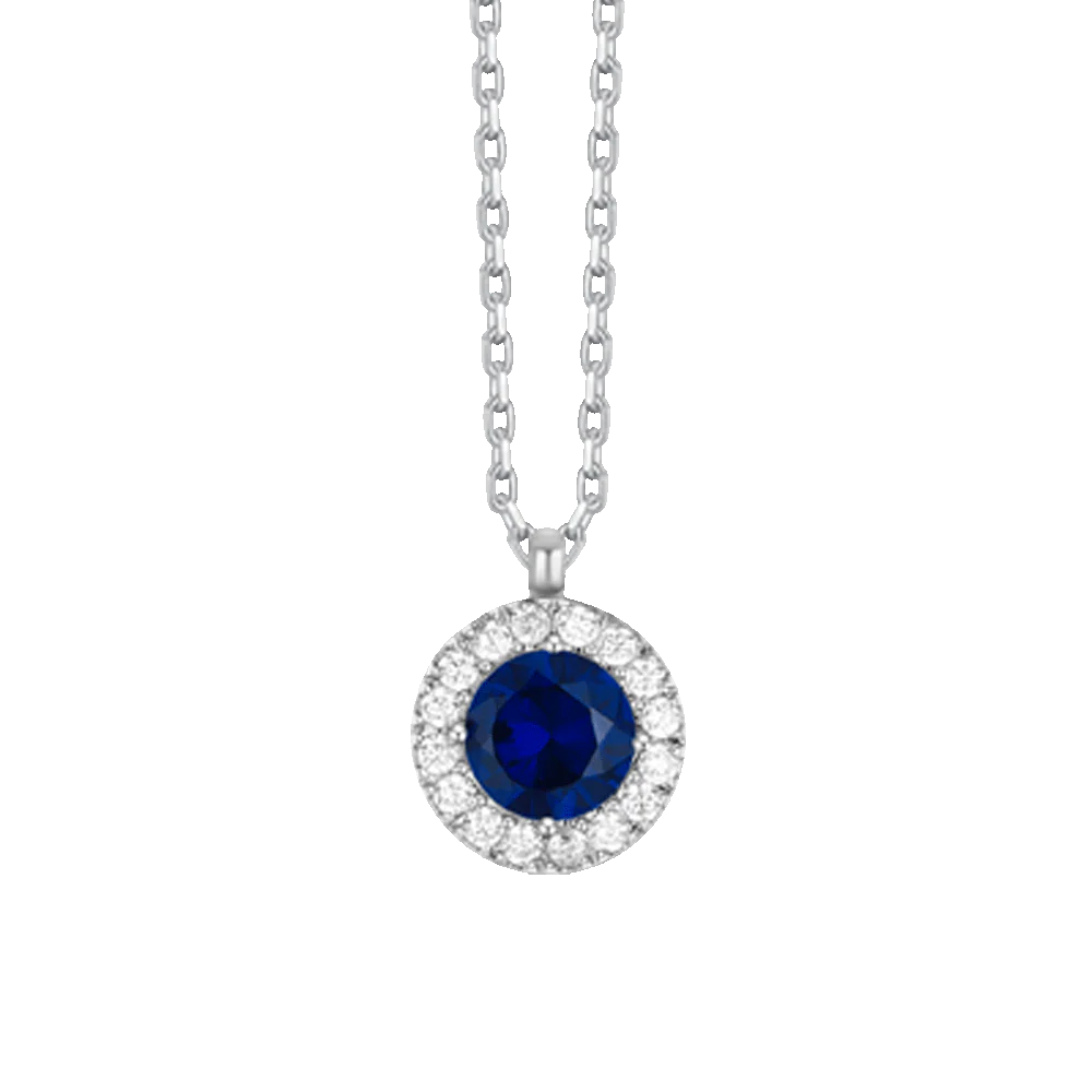 Collana donna in acciaio con elemento con zirconi blu e bianchi