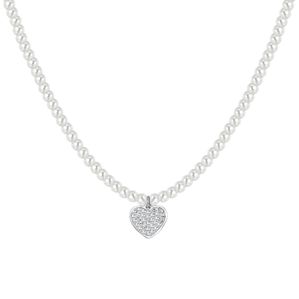 LUCA BARRA - COLLANA DONNA IN ACCIAIO PERLE E CUORE