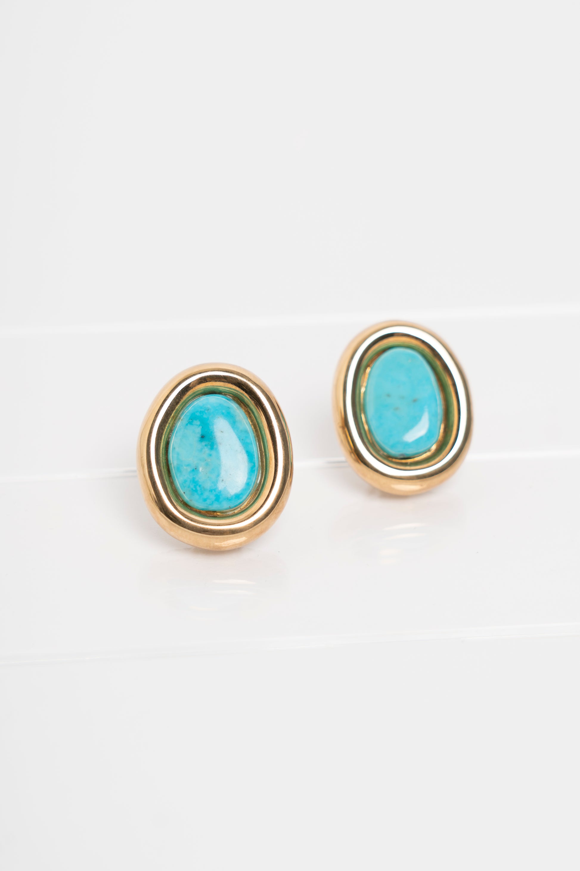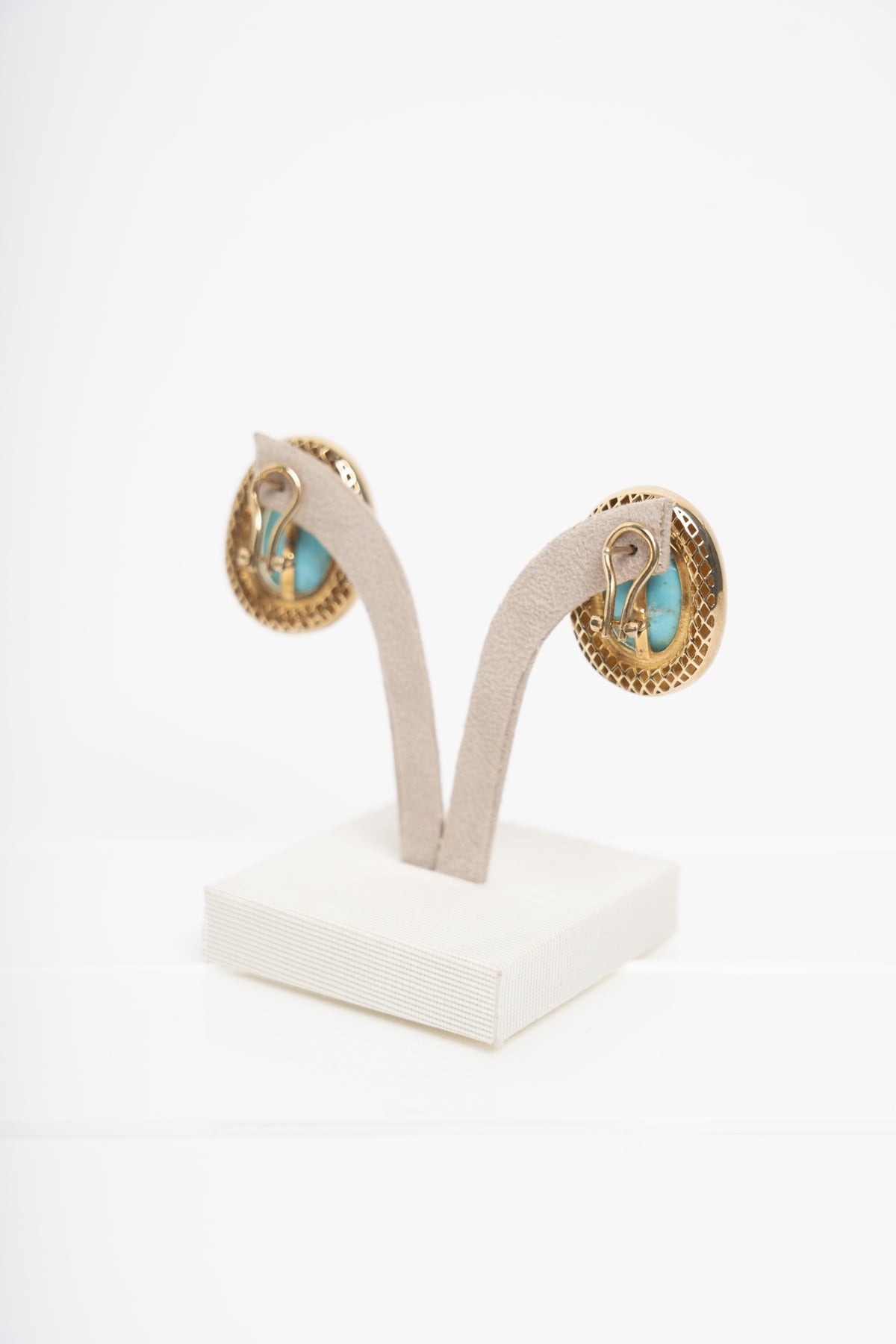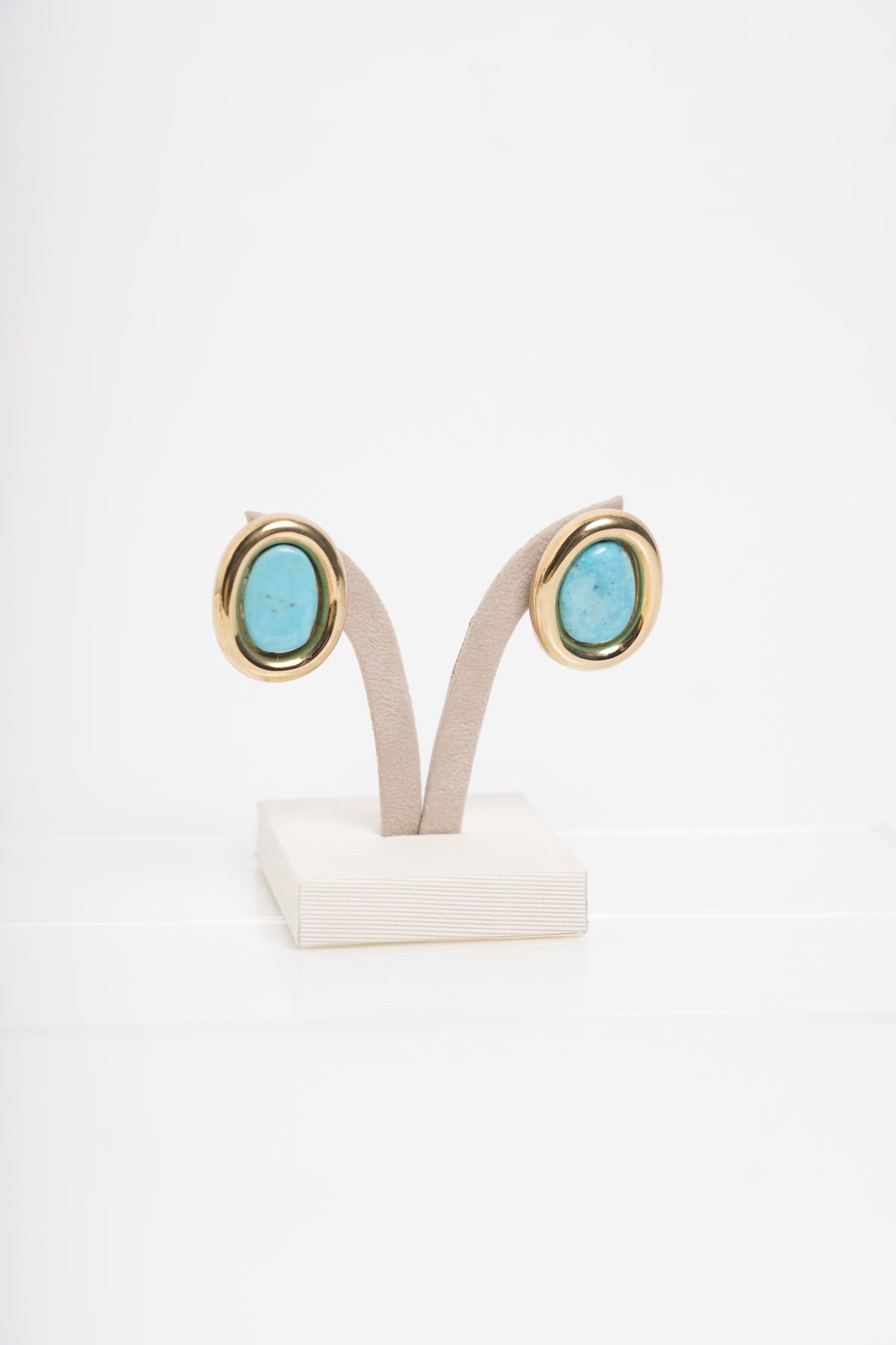 Orecchini bottone in argento placcato in oro 18kt e centrale in turchese