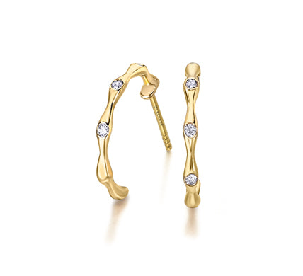 Orecchini in oro 18 carati effetto bambu con diamanti taglio brillante