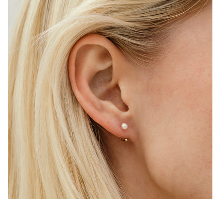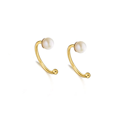 Orecchini modello ear cuff in oro 18 carati con perla di coltivazione di 3 mm