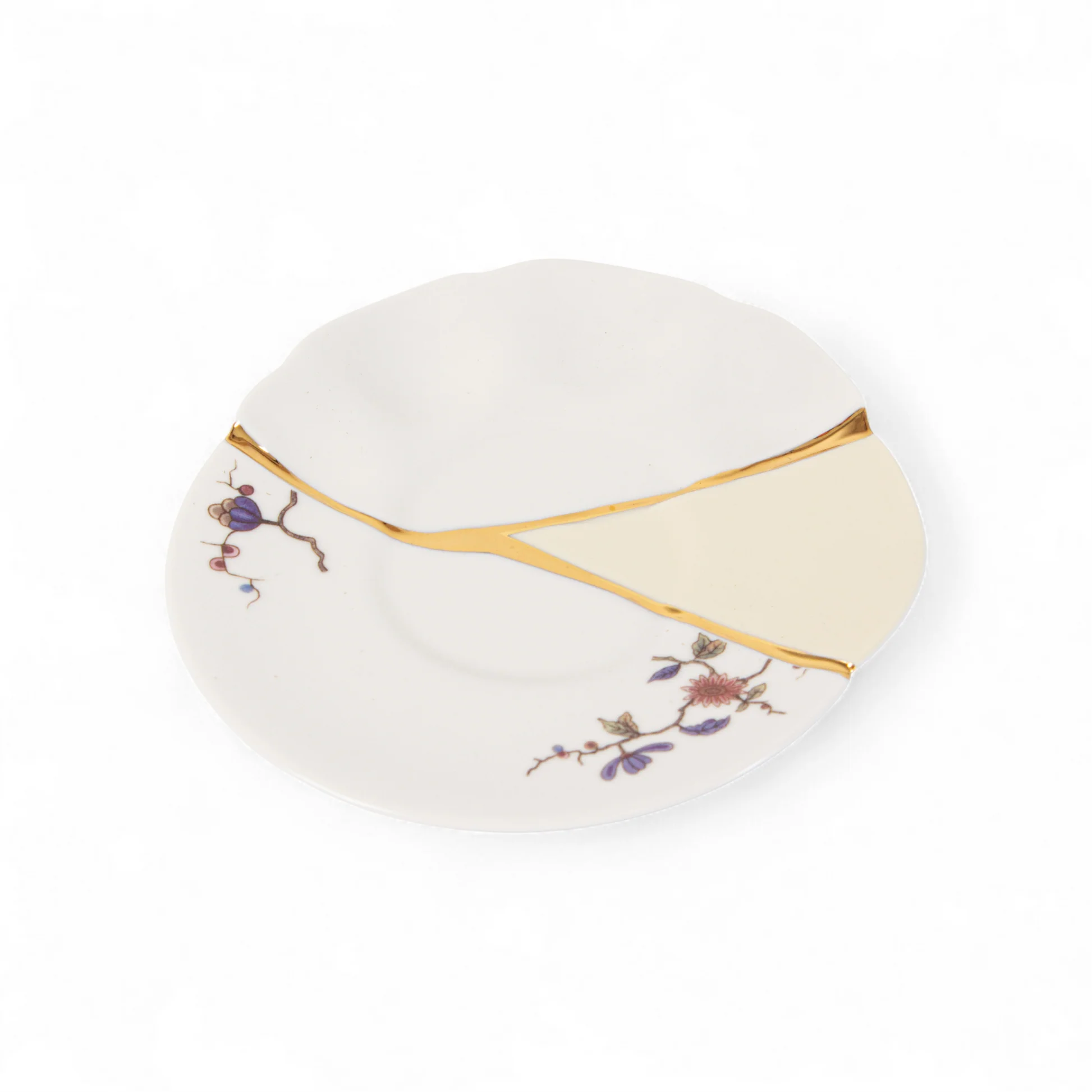 L'arte giapponese Kintsugi assume forme contemporanee. La delicata porcellana è glorificata e arricchita da frammenti d'oro per una collezione di articoli per la tavola fatta di composizioni affascinanti e inaspettate.