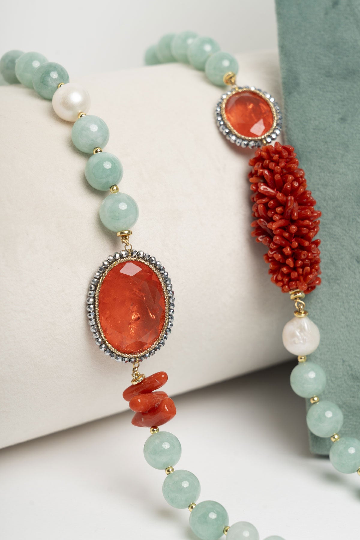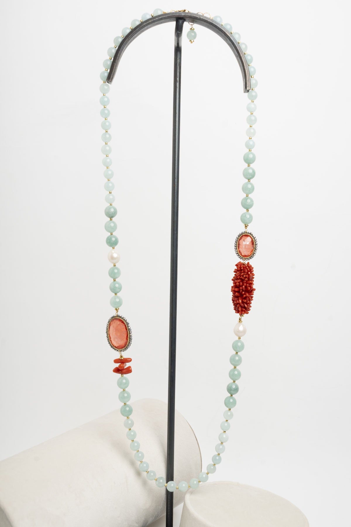 SICYLUI - COLLANA ACQUAMARINA E CORALLO