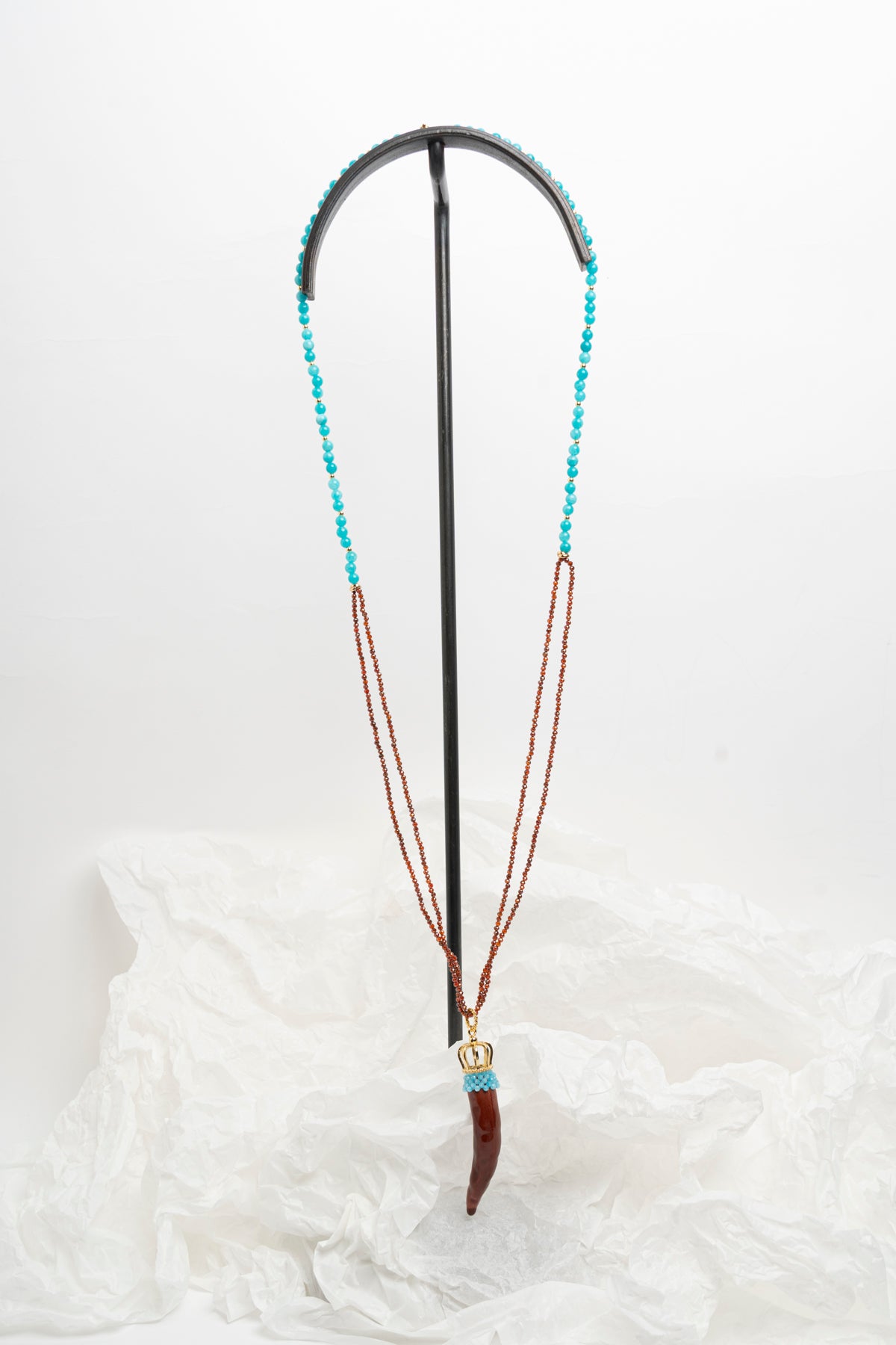 SICYLUI - COLLANA CORNO GRANDE IN CERAMICA MORO E TURCHESE CON DOPPIA CATENA