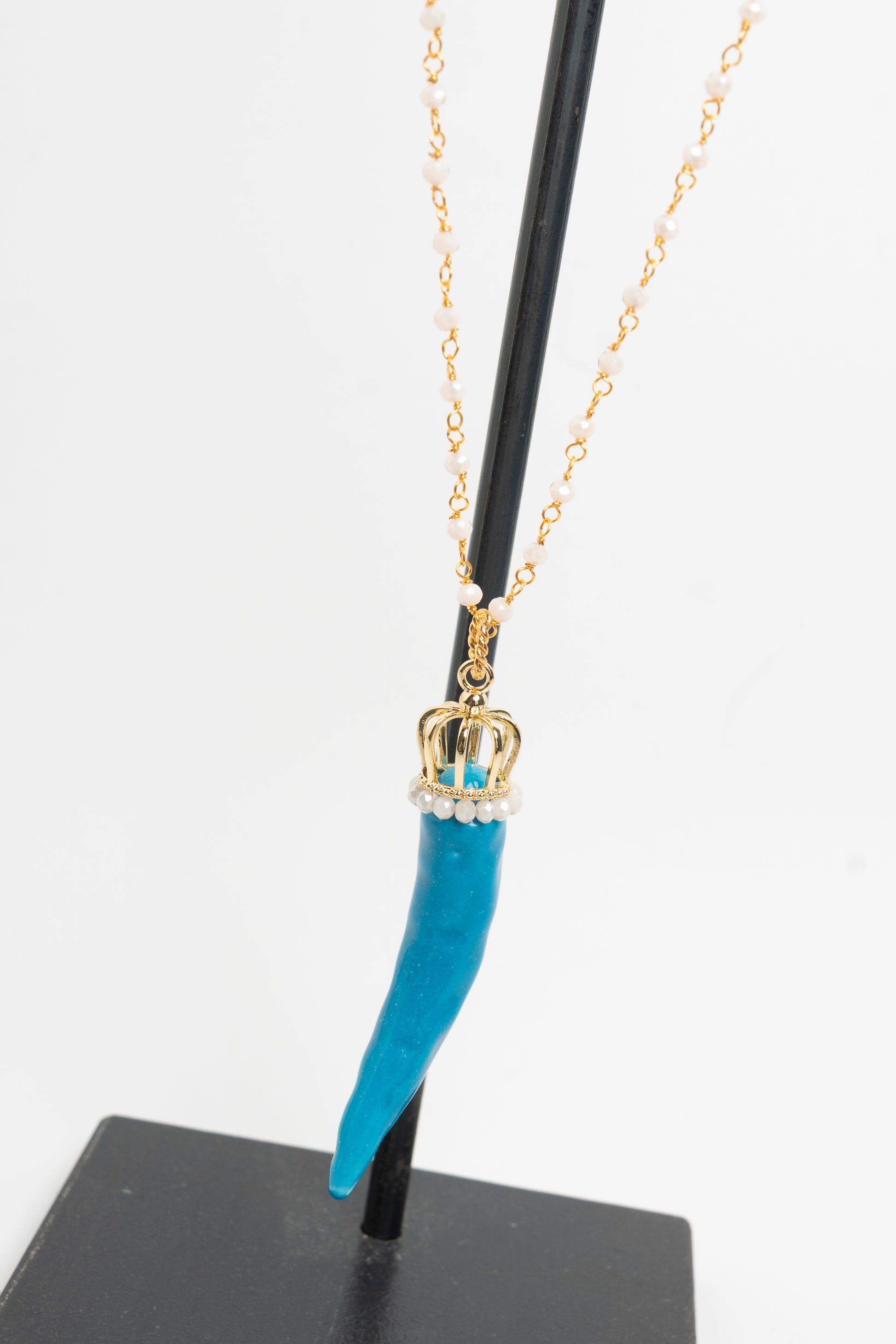 SICYLUI - COLLANA CORNO IN CERAMICA TURCHESE E CORONA