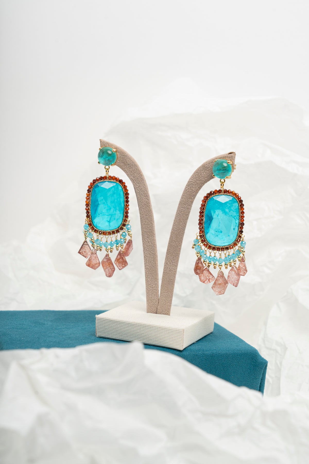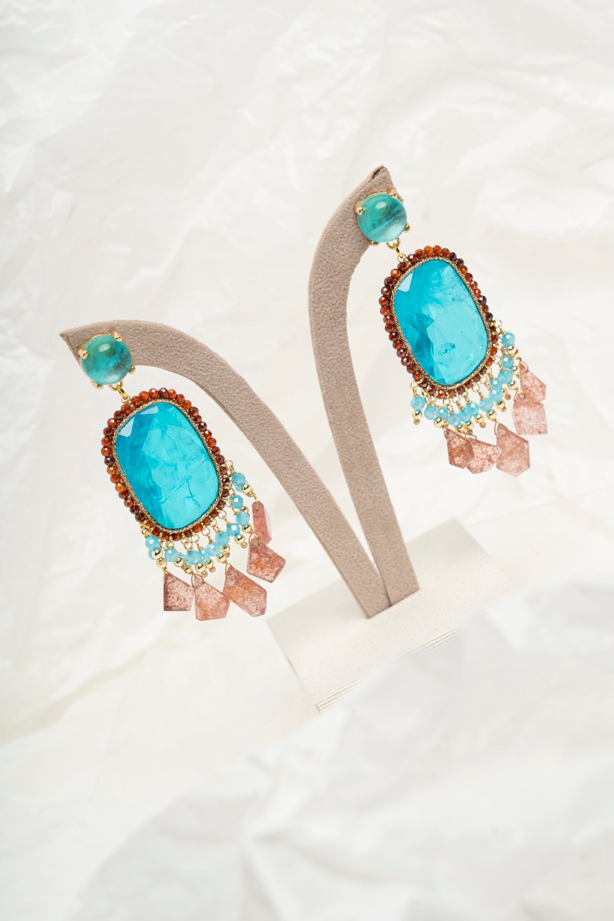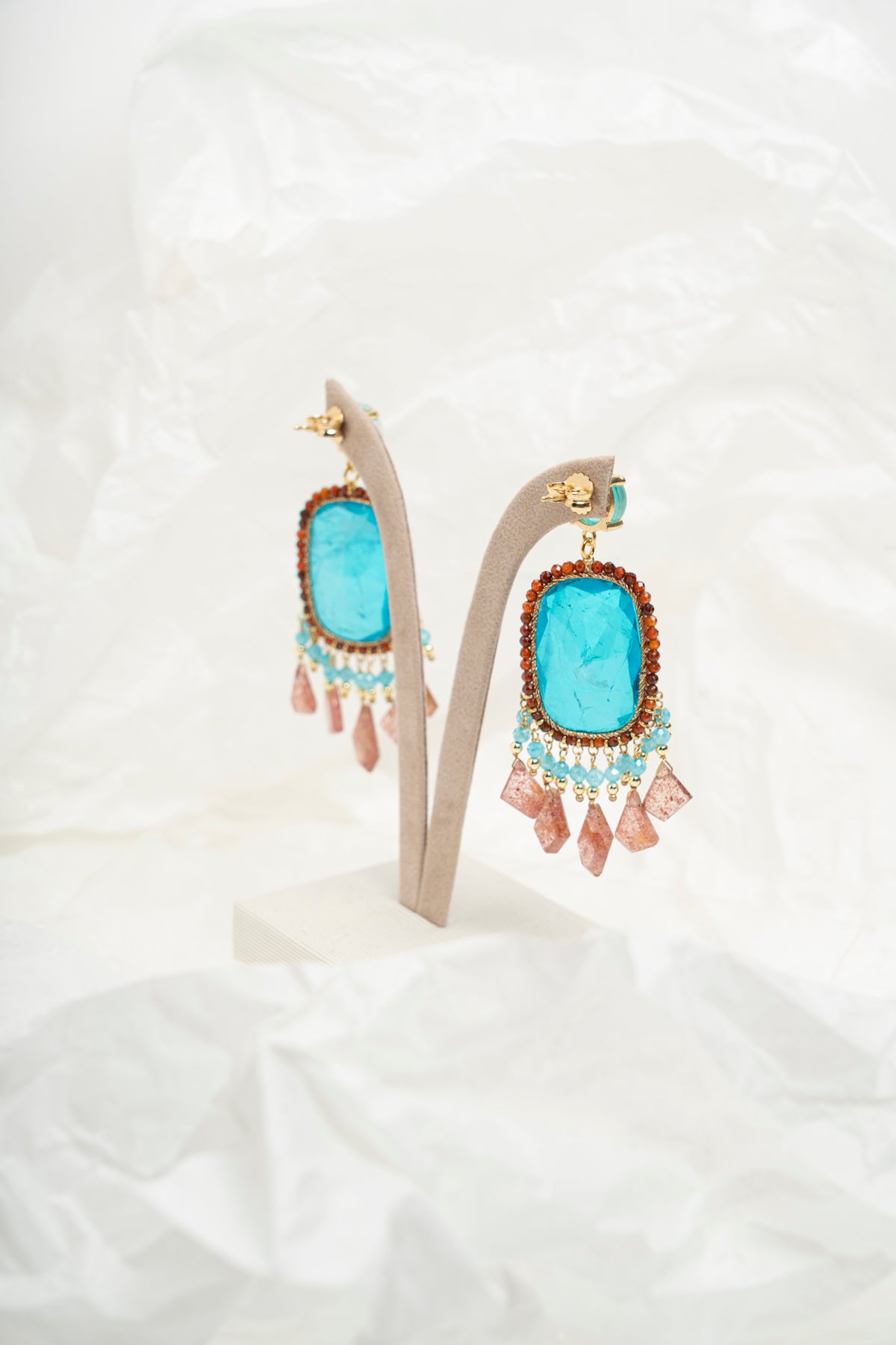 SICYLUI - ORECCHINI CON ZIRCONE TURCHESE CENTRALE E ZIRCONI MORO