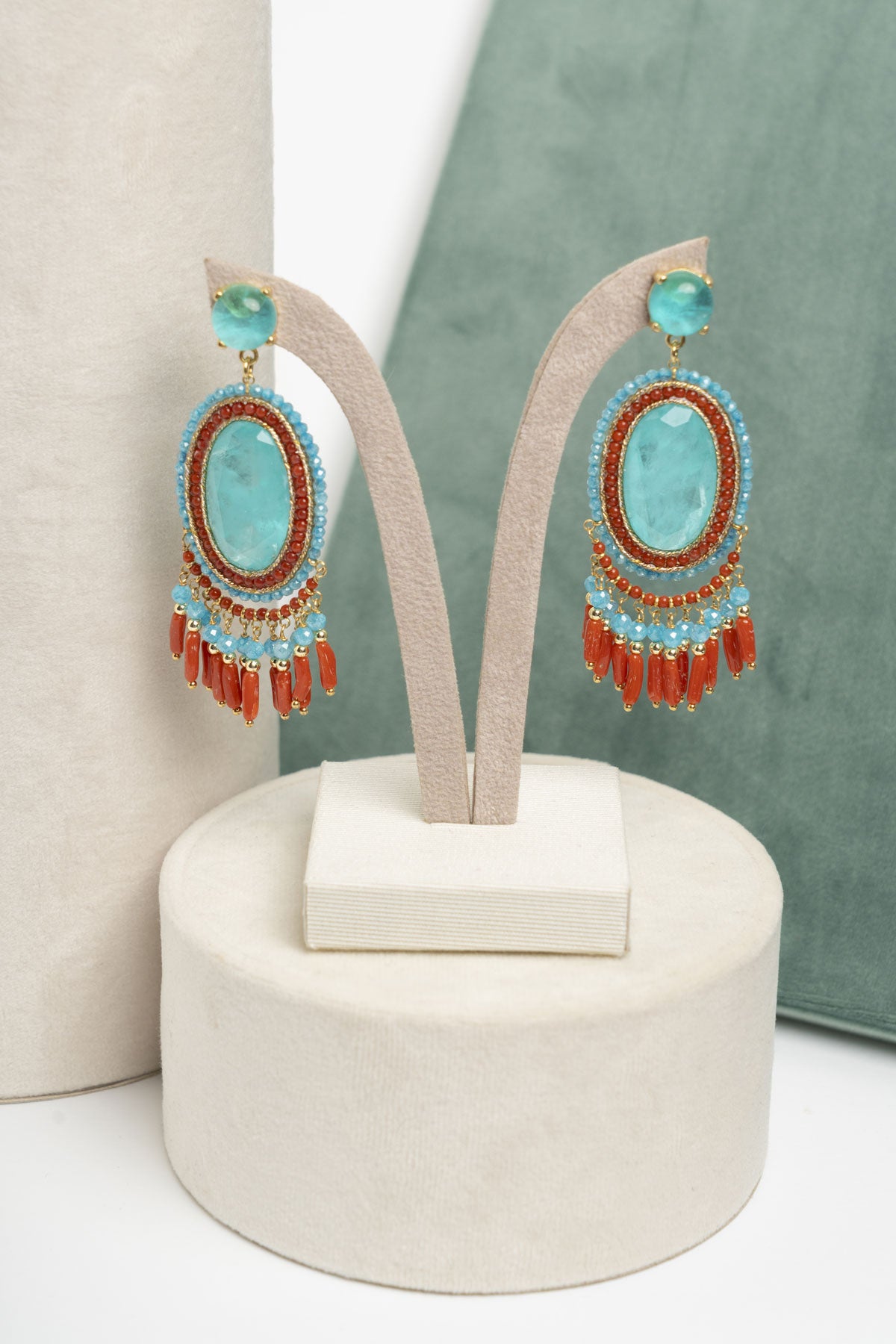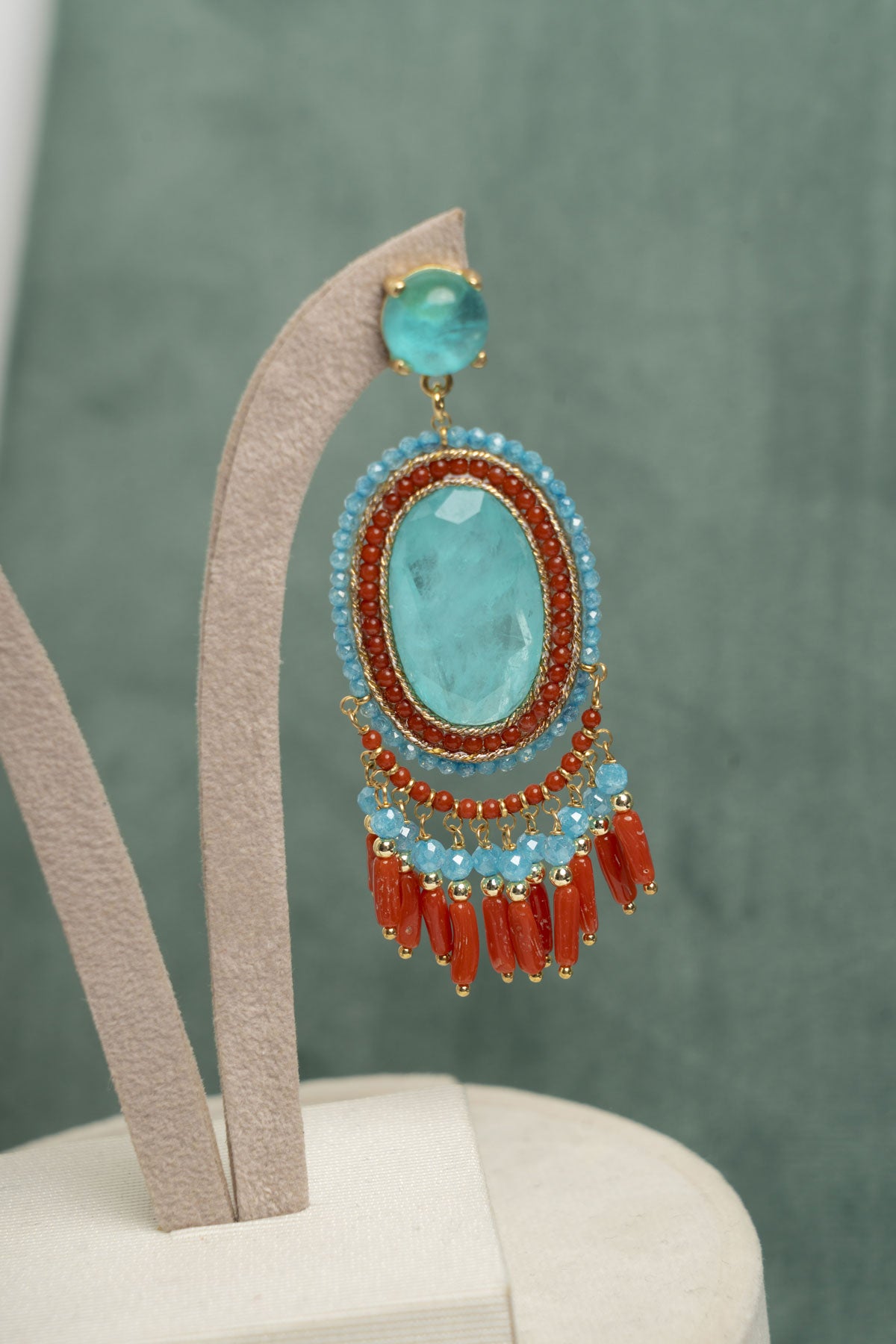 Orecchini in acquamarina e corallo