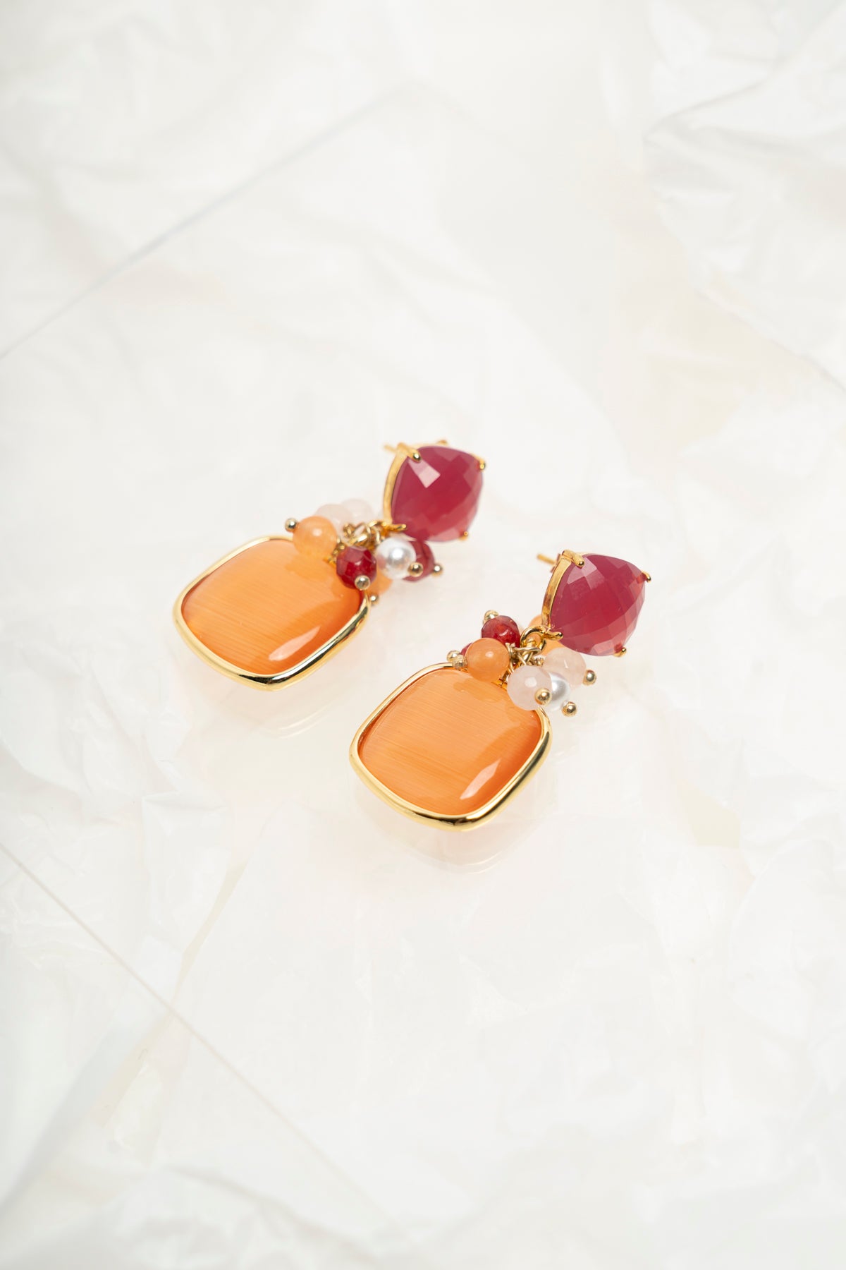 SICYLUI - ORECCHINI CON GIADA ARANCIONE E ROSSO RUBINO