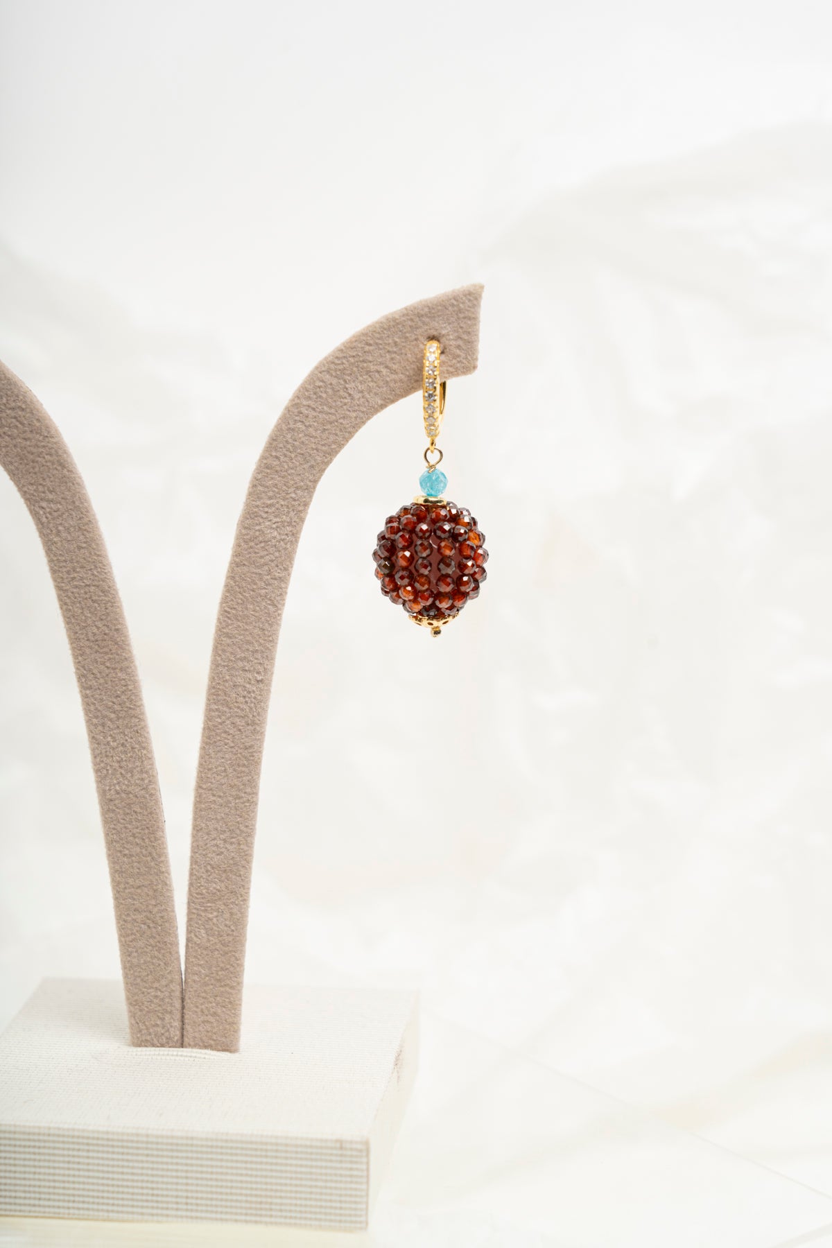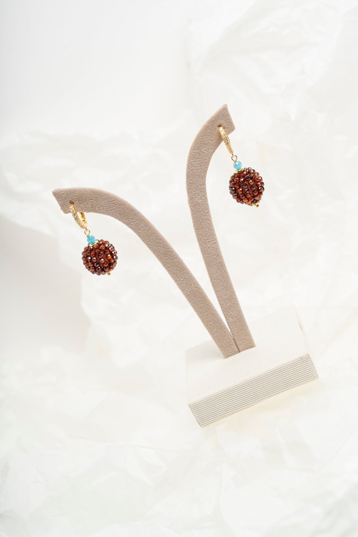 Orecchini in argento dorato con palline pendenti di zirconi moro