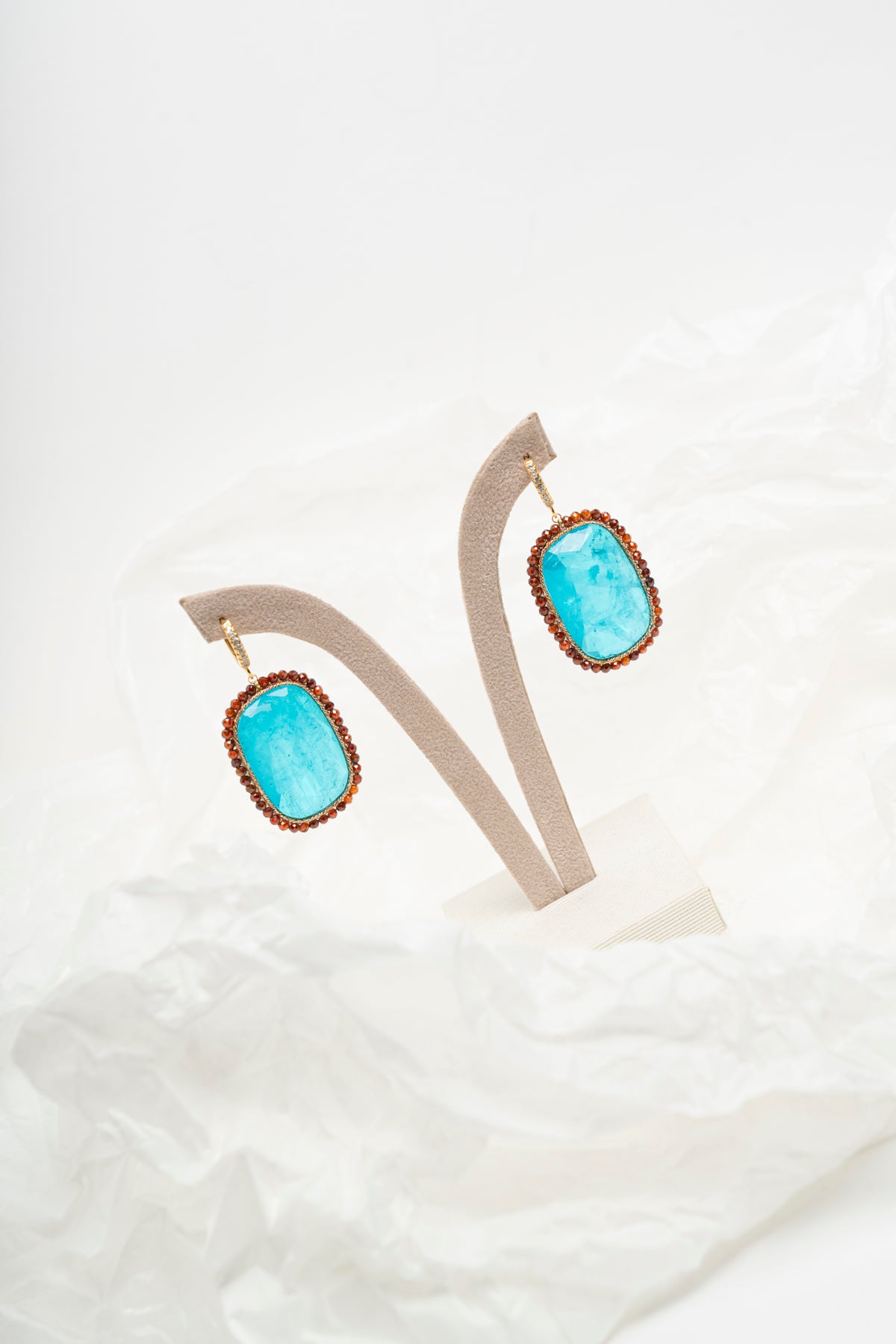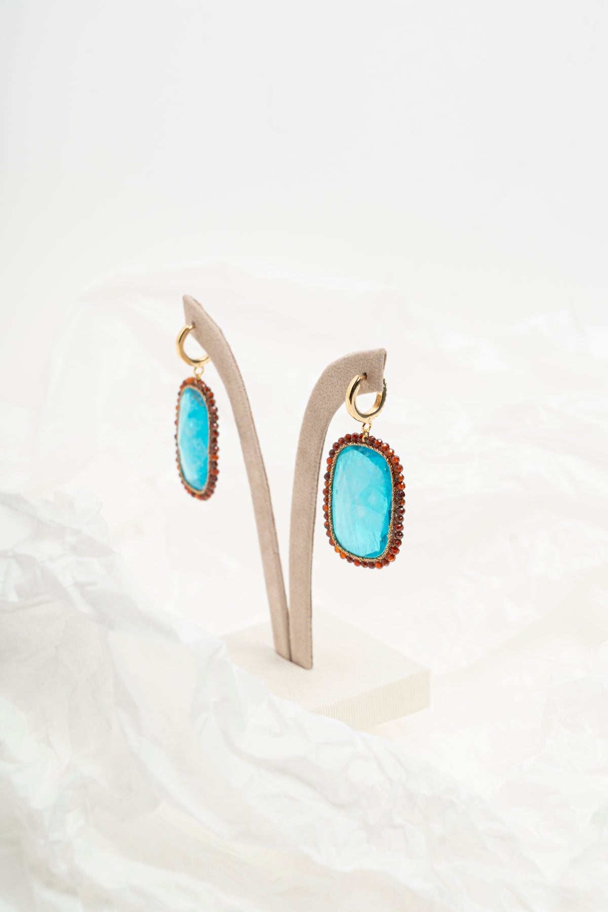 SICYLUI - ORECCHINI PENDENTI OVALI CON ZIRCONI TURCHESI E MORO
