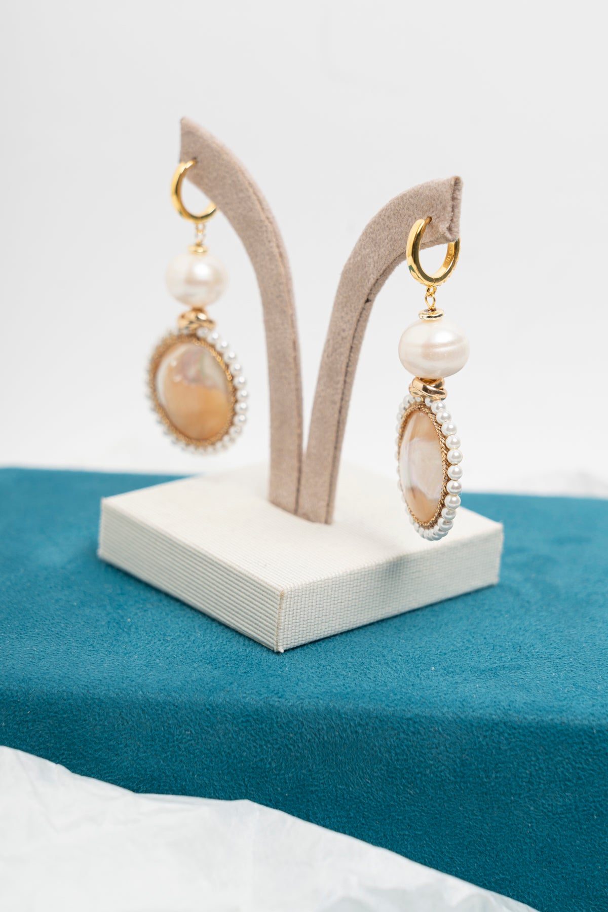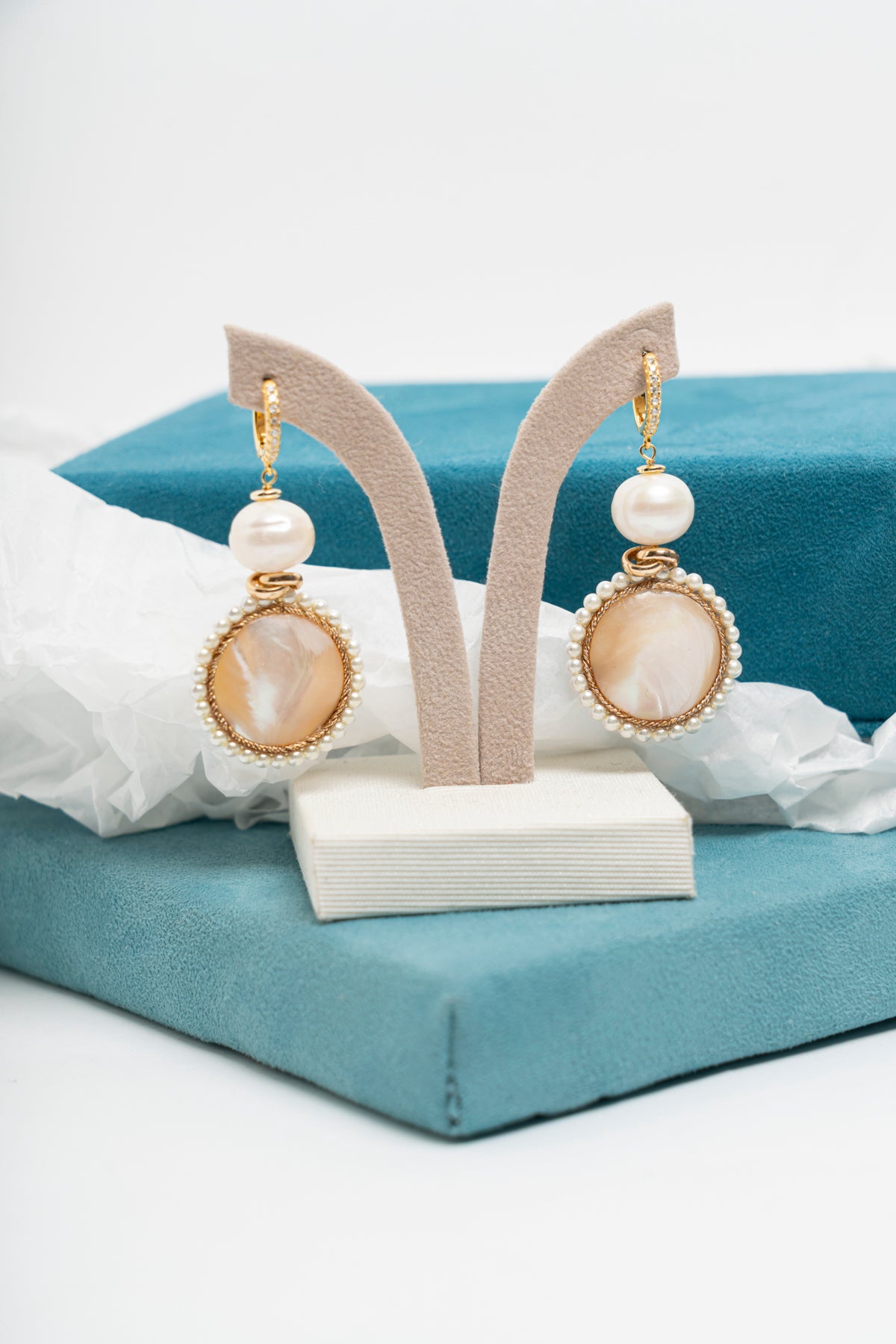 Orecchini pendenti con madreperla e perle di fiume