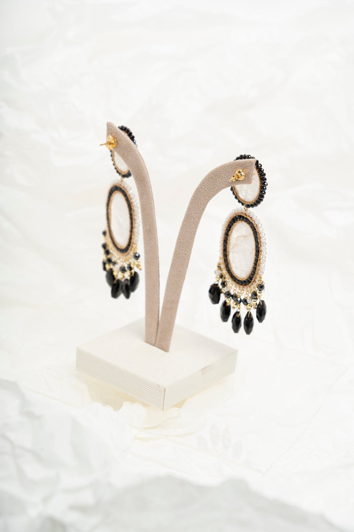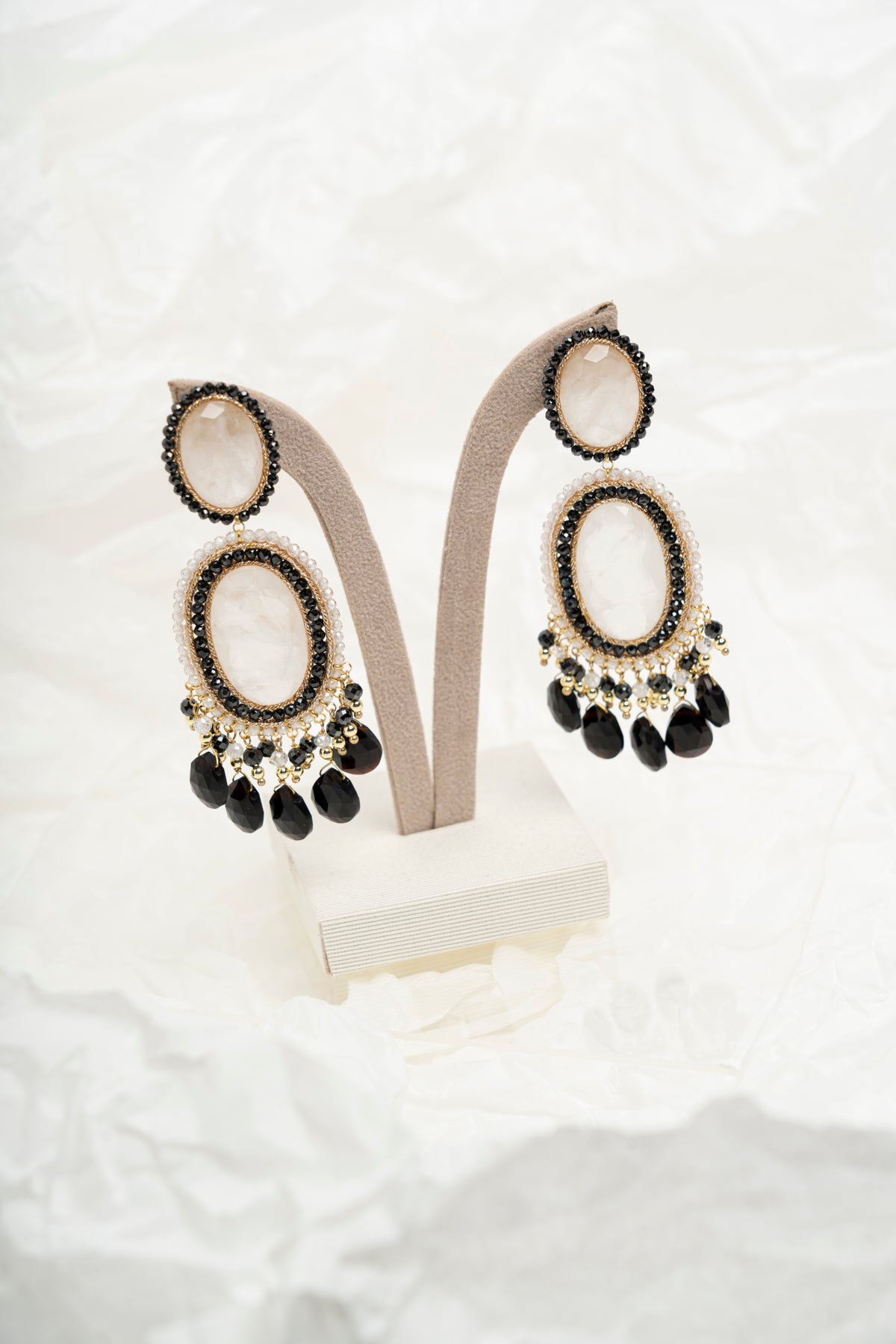 SICYLUI - ORECCHINI PENDENTI CON ZIRCONI E ONICE
