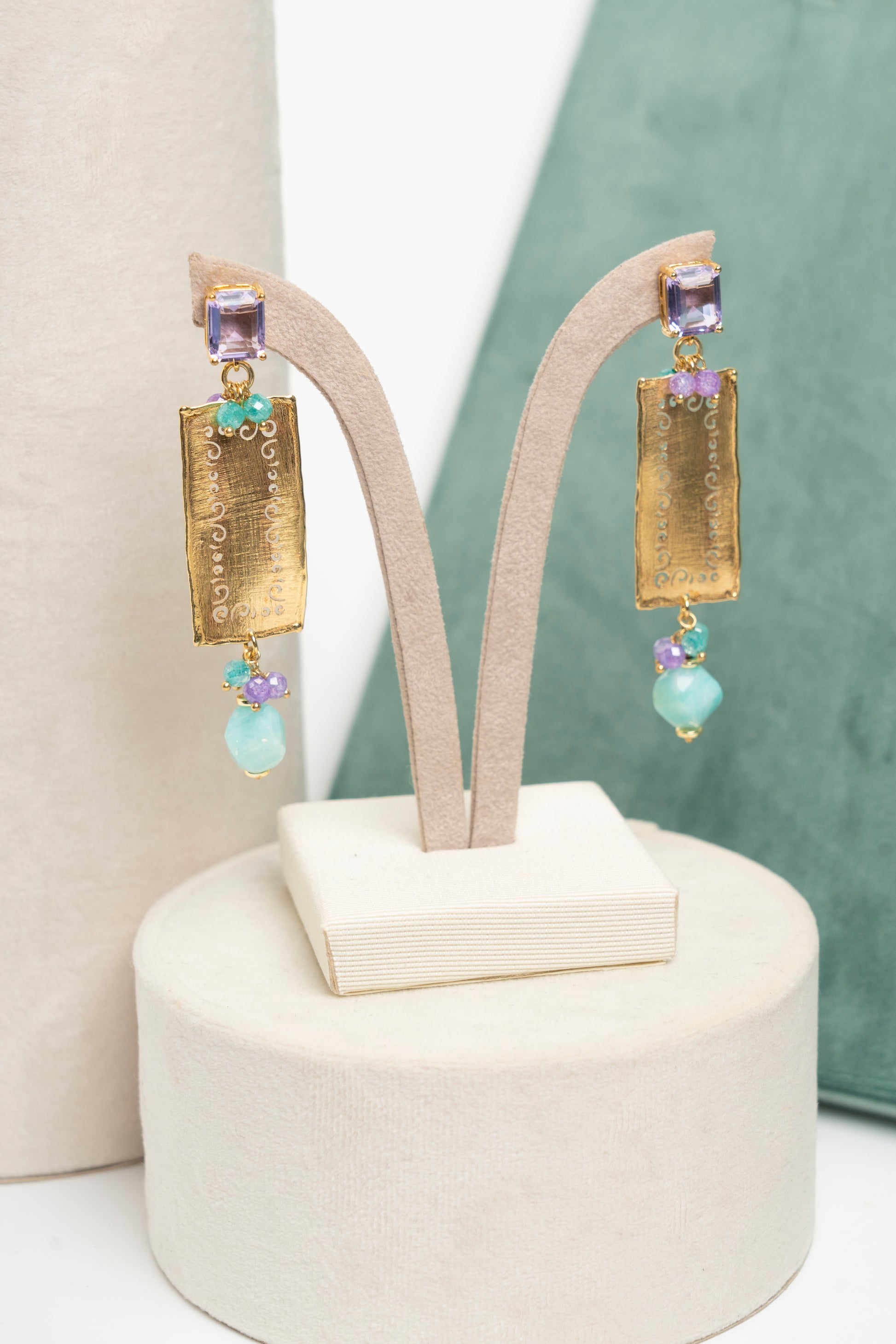 SICYLUI - ORECCHINI PENDENTI IN AMAZZONITE E CRISTALLI LILLA
