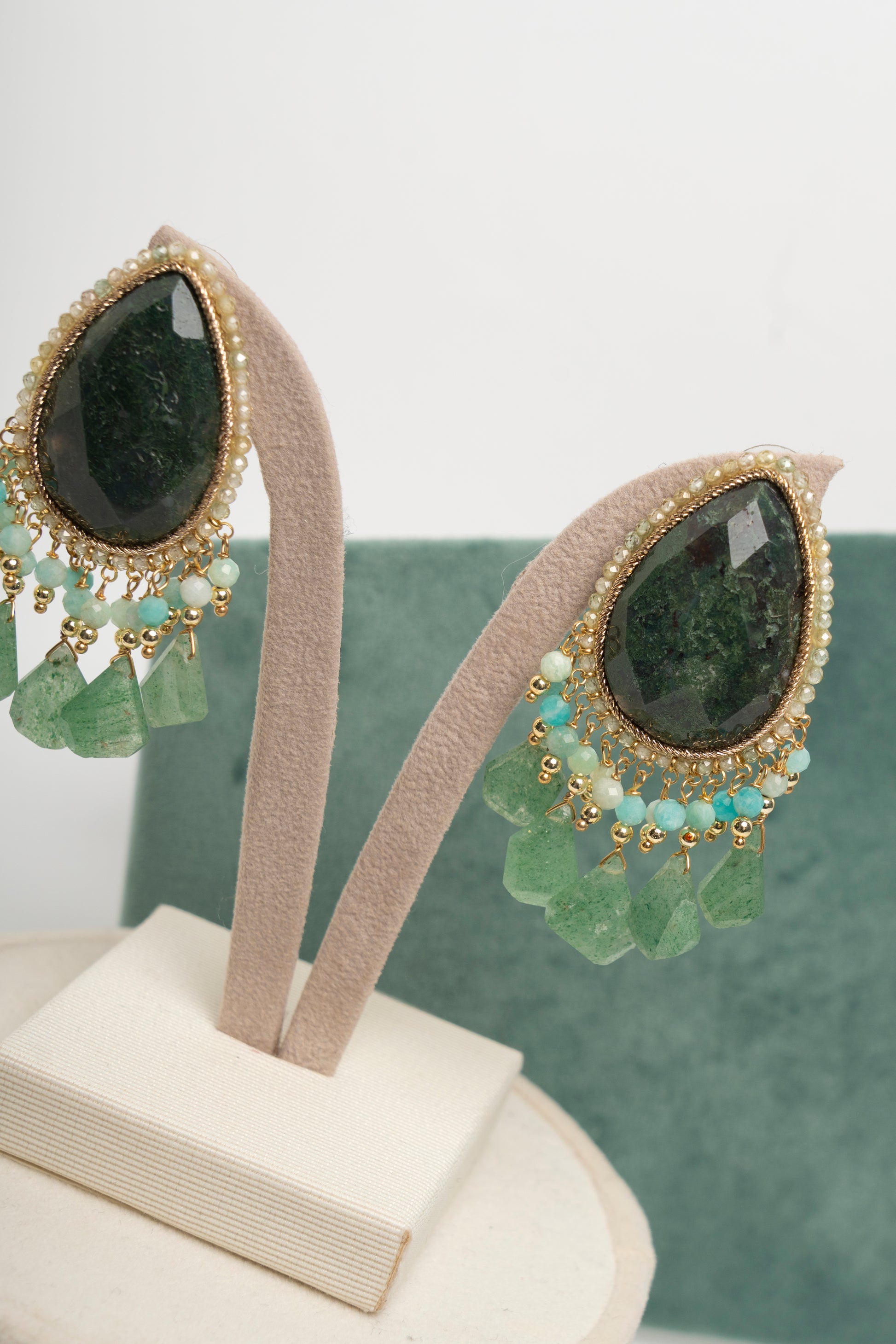 SICYLUI - ORECCHINI PENDENTI DIASPRO VERDE TAGLIO GOCCIA