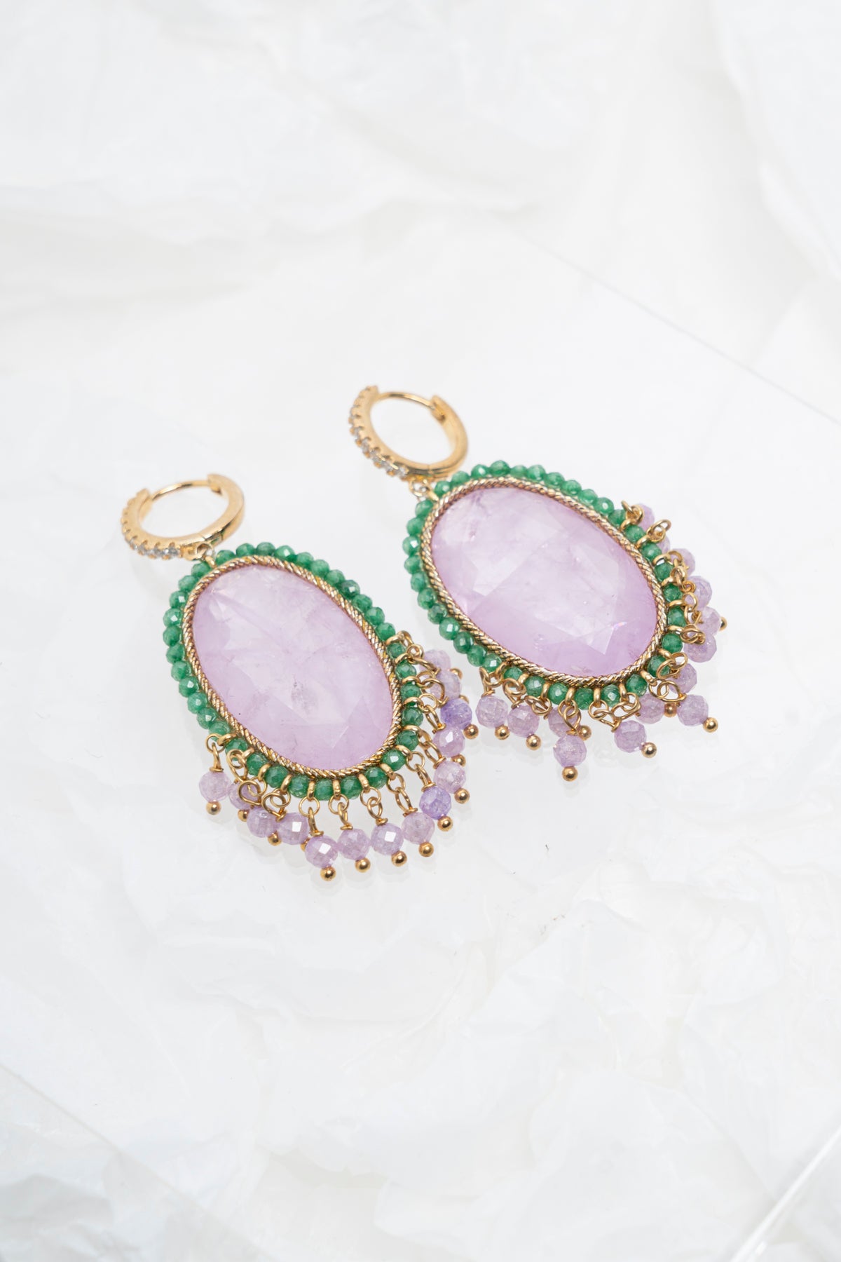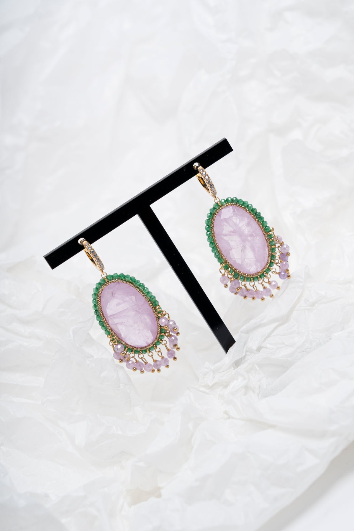 SICYLUI - ORECCHINI PENDENTI ZIRCONI GLICINE E VERDE MARE