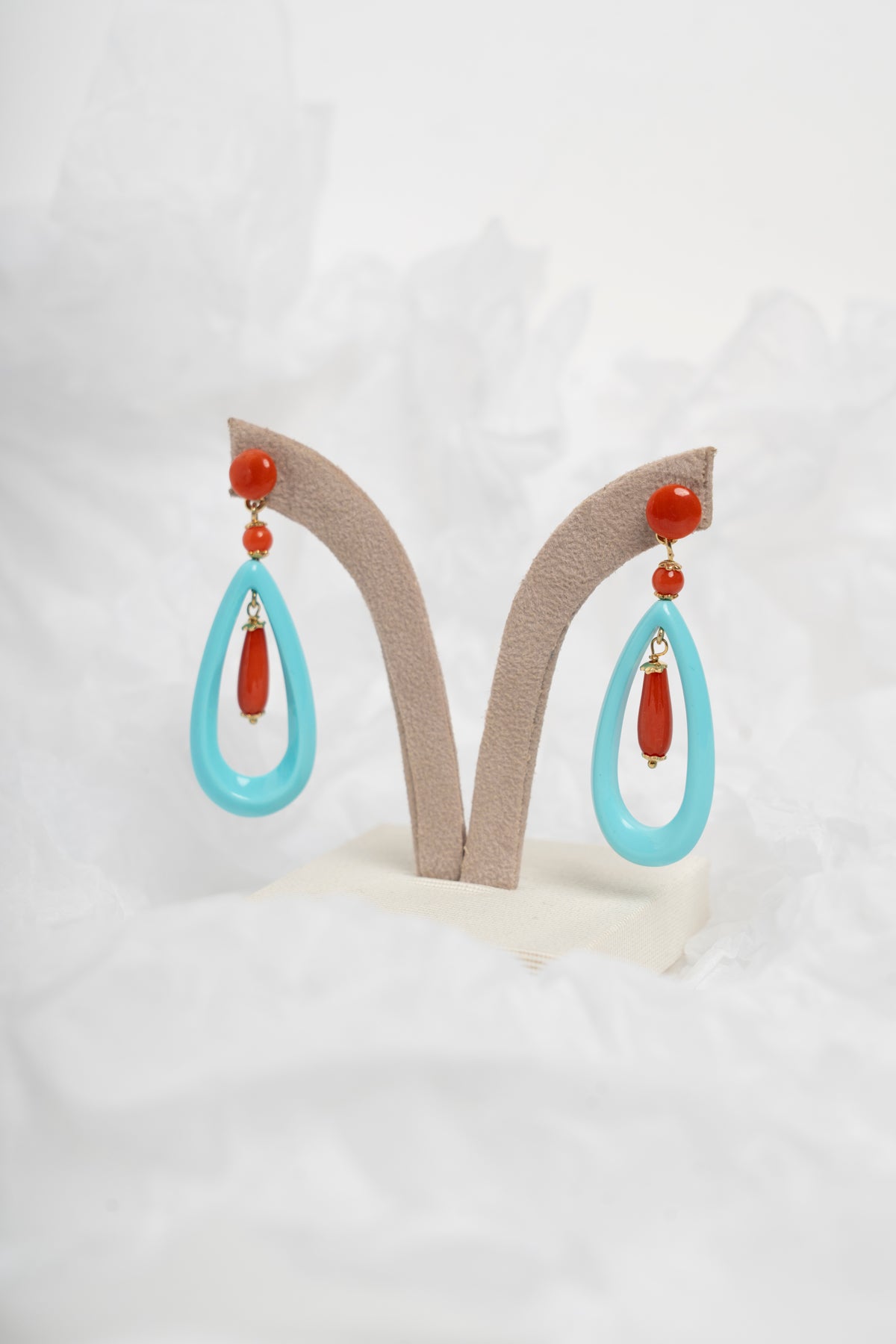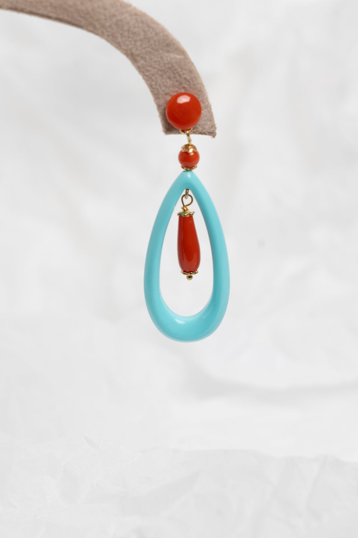 SOARA - ORECCHINI PENDENTI A GOCCIA IN TURCHESE E CORALLO