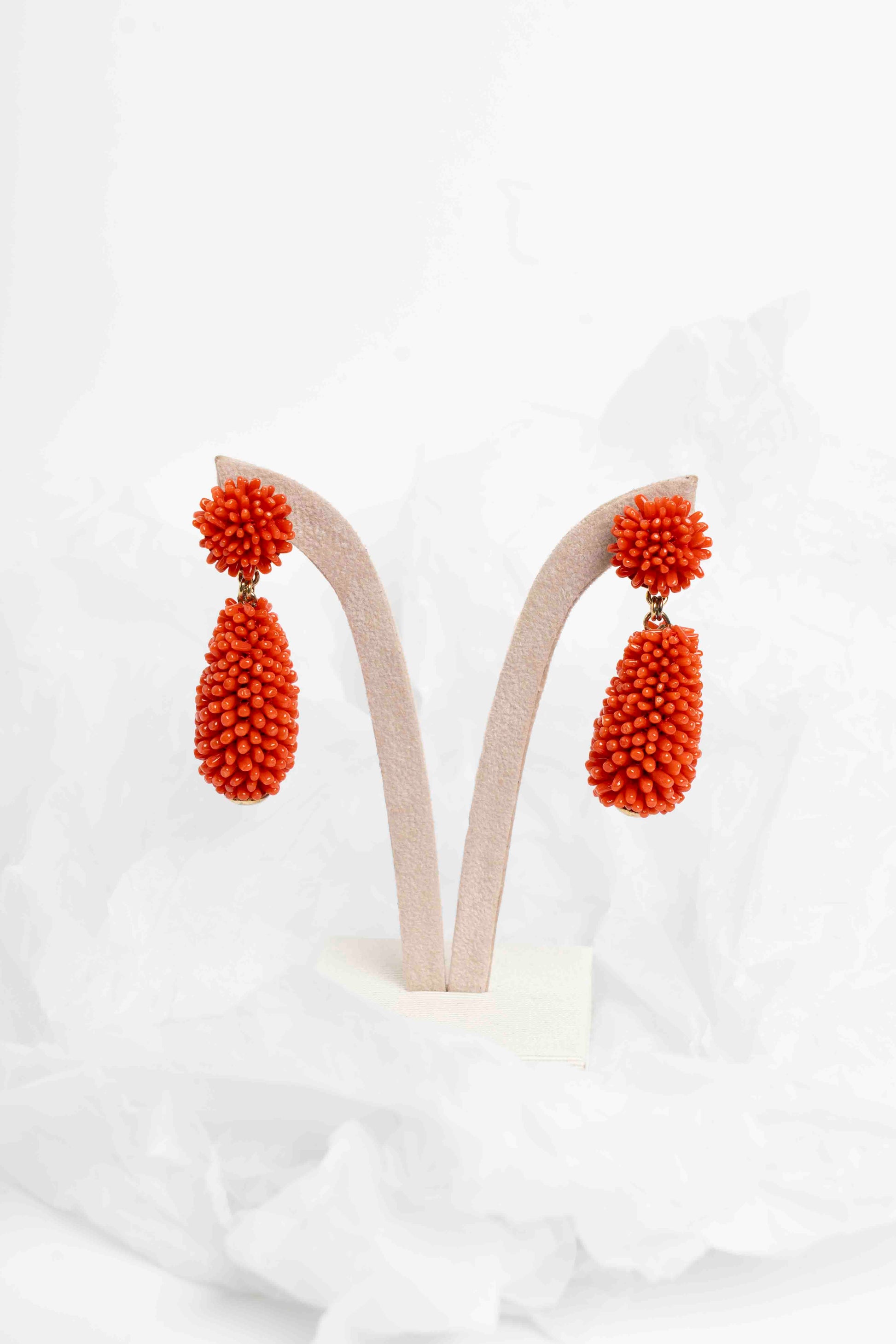 Orecchini in corallo mediterraneo lavorazione cespuglio con montatura in argento placcato oro 18kt