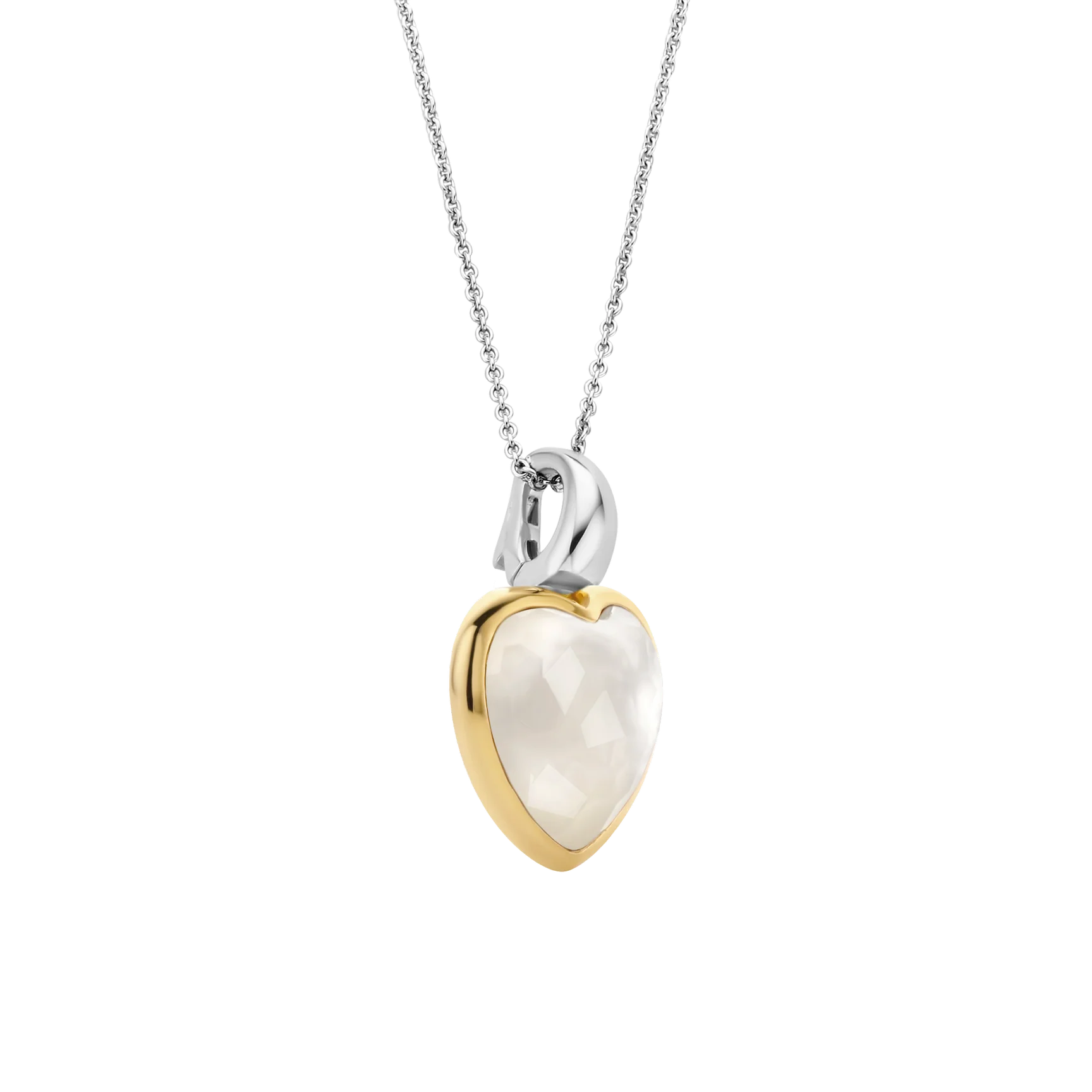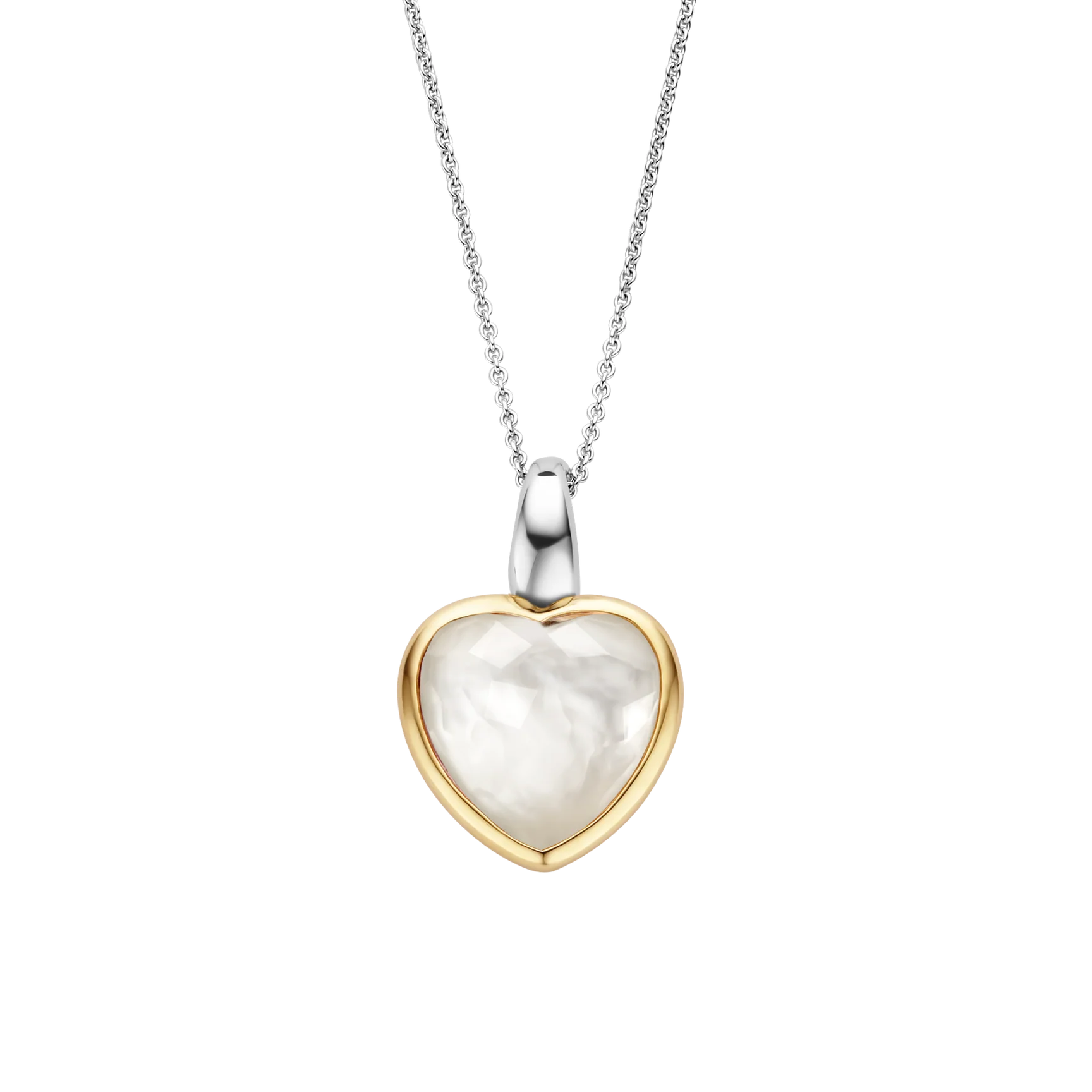 TI SENTO - COLLANA CIONDOLO CUORE PENDENTE ARGENTO DORATO E MADREPERLA