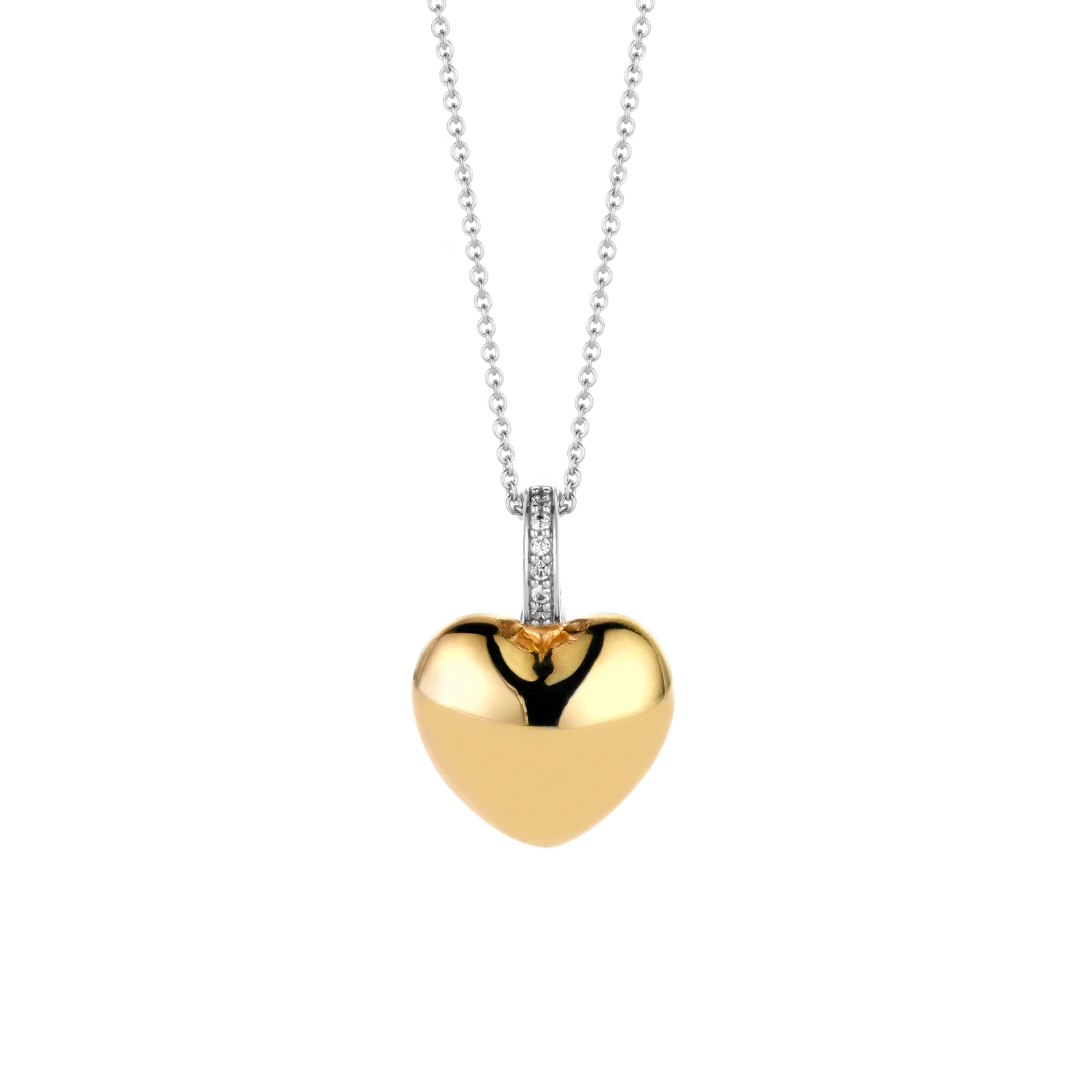 TI SENTO - COLLANA CIONDOLO CUORE PENDENTE ARGENTO DORATO E ZIRCONI