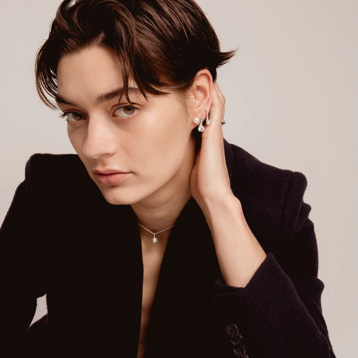 la perla è delicatamente sospesa a una catena in argento sterling.