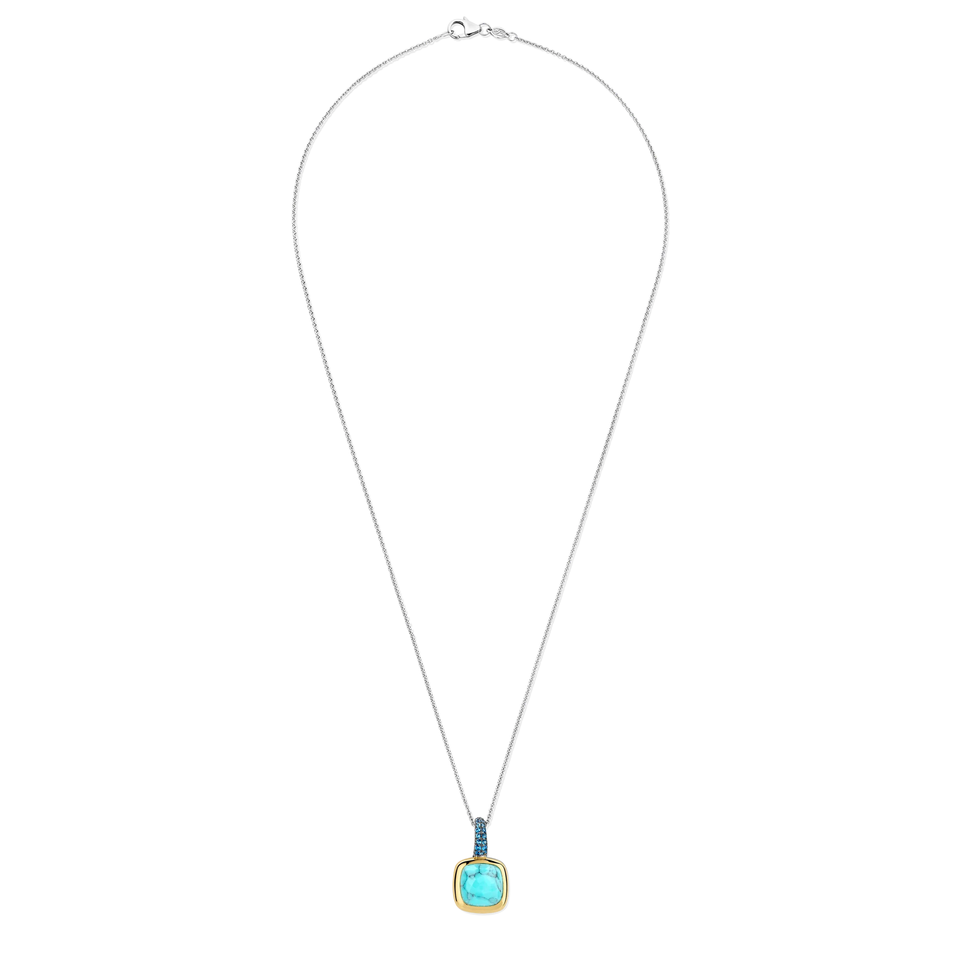 TI SENTO - COLLANA PENDENTE ARGENTO DORATO ZIRCONI BLU E TURCHESE