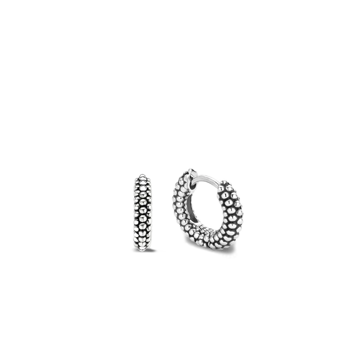 Questi orecchini TI SENTO sono realizzati in argento sterling rodiato e presentano un motivo a bolle.