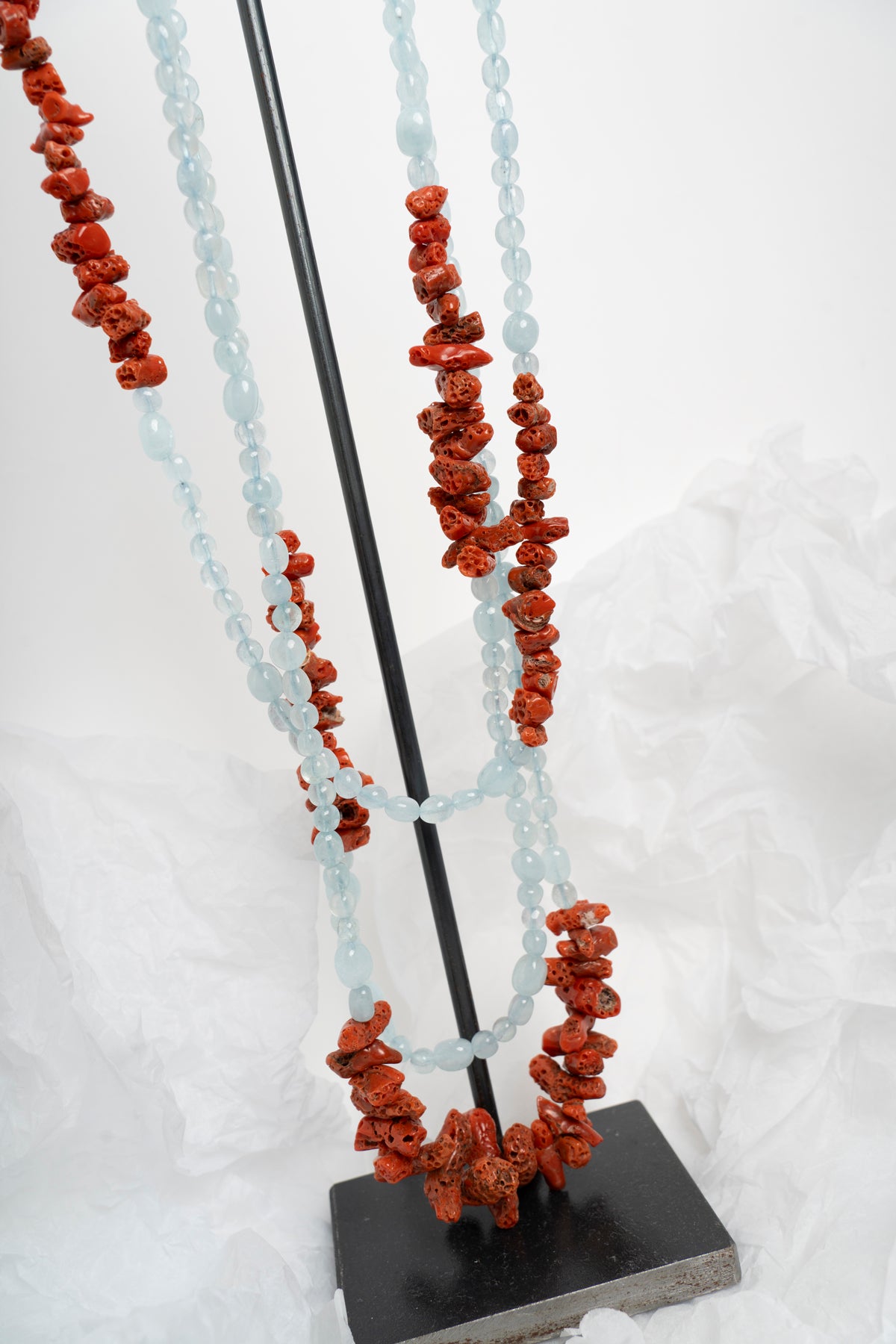SOARA - COLLANA MULTIFILI IN ACQUAMARINA E CORALLO